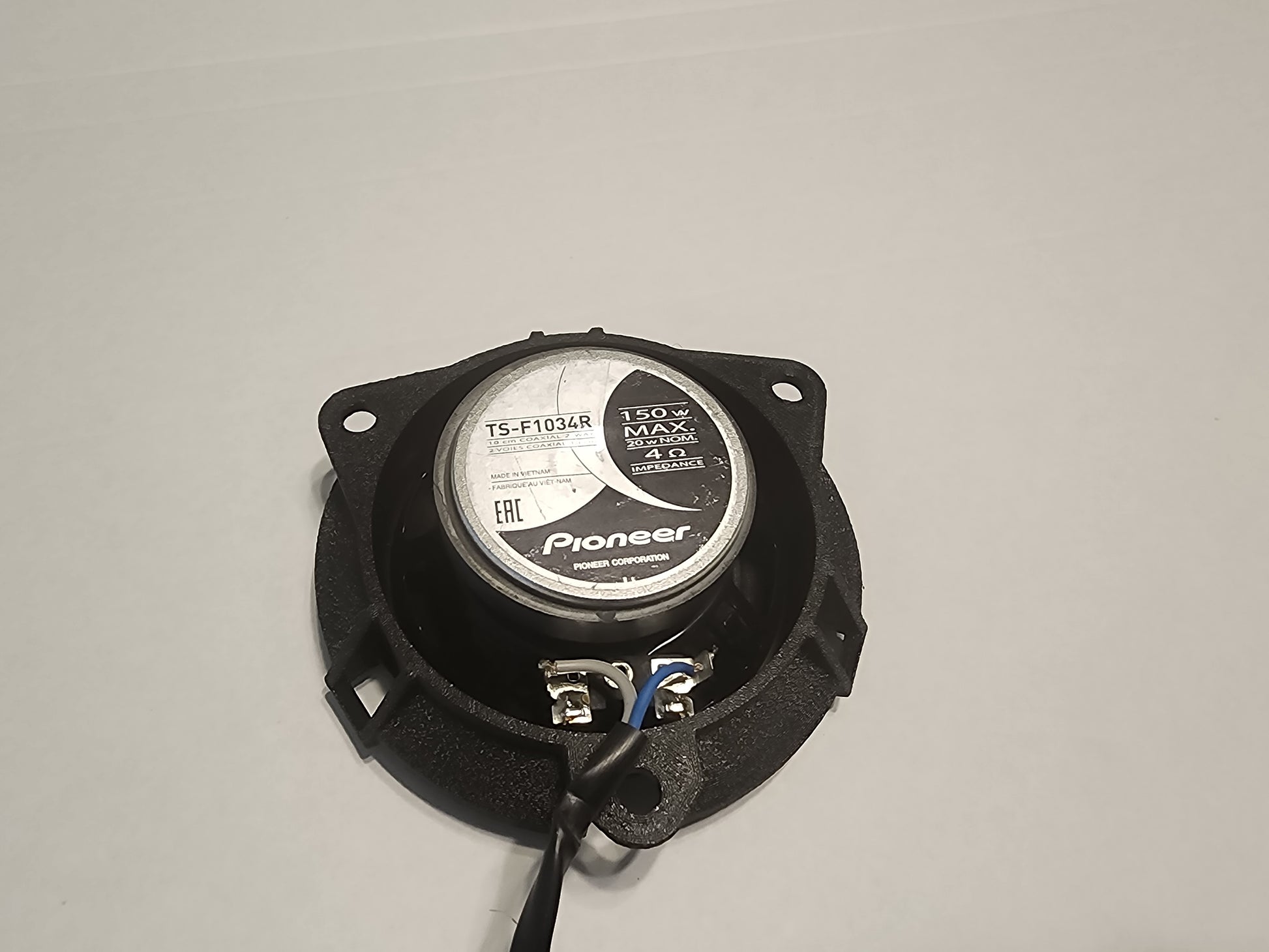 While these were designed around the Pioneer TS-F1034R speaker they should fit any 4" speaker with a 43mm (1.7in) mounting depth. These spacers allow using factory mounting hardware and retain the factory speaker grille while providing a hugely improved sound over the factory paper cone.